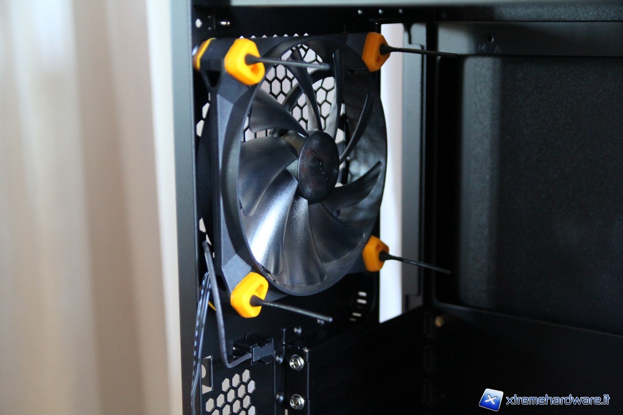 Una ventola Antec True Quiet 120, con portata d'aria di 35.8CFM massimi e 19.9 dB(A) a pieno regime, servirà per espellere l'aria calda dall'interno del case. Quest'ultima è ancorata al cabinet grazie a degli inserti in silicone e delle viti in gomma, che impediranno la generazione di vibrazioni.