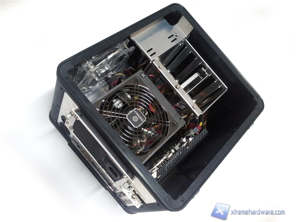 La seconda idea riguarda le ventole: utilizzando una ventola da 120mm nella parte superiore del case, invece che di 140mm, molti utenti avrebbero potuto montare, senza modifiche o senza comprare adattatori, un sistema a liquido all-in-one per la CPU in quanto i radiatori di tali sistemi sono da 120mm. Non solo, il minor spazio a disposizione dovuto alla ventola da 120mm poteva permettere addirittura l’installazione di ben due ventole da 120mm, permettendo quindi, salvo installazione di un lettore DVD, di inserire addirittura un sistema a liquido all-in-one biventola sul top del case.