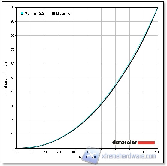 La copertura dello standard sRGB è del 100% e per quello Adobe è del 79%, il valore del gamma di default (2,2) ottiene un response perfetto, con temperatura del bianco di 6000K rispetto ai 6500K selezionati nel menù OSD.